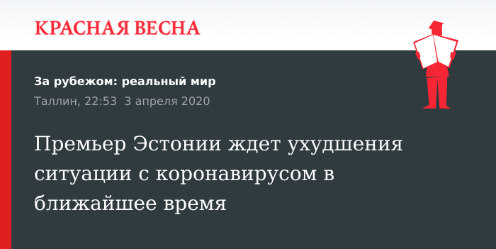 «К сожалению, прогнозы показывают, что в ближайшие недели ситуация скорее ухудшится, нежели улучшится», — сказал Ратас, добавив, что правительство работает над стратегией выхода из кризиса, несмотря на то что пик эпидемии, видимо, еще не пройден.