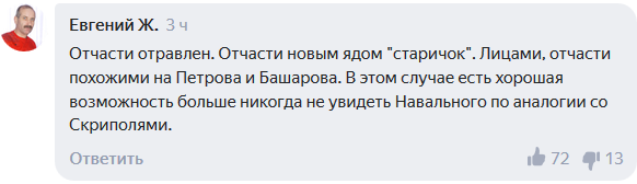 Голословные заявления западных политиков о намеренном отравлении Алексея Навального, вызывают опасения, что российский оппозиционер рискует повторить незавидную судьбу Скрипалей, считают пользователи Сети. 24 августа их комментарии опубликованы новостным агрегатором «Яндекс.Новости».