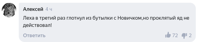 «Леха в третий раз глотнул из бутылки с Новичком, но проклятый яд не действовал!» — заявил Алексей.