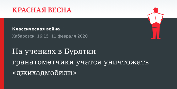 Военные учения по отработке уничтожения гранатометчиками и снайперами «джихадмобилей» на максимальной дистанции проходят на полигонах в Бурятии, 10 февраля сообщает пресс-служба Восточного военного округа.