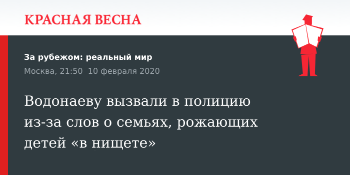 Водонаеву вызвали в полицию из-за слов о семьях, рожающих детей «в нищете»