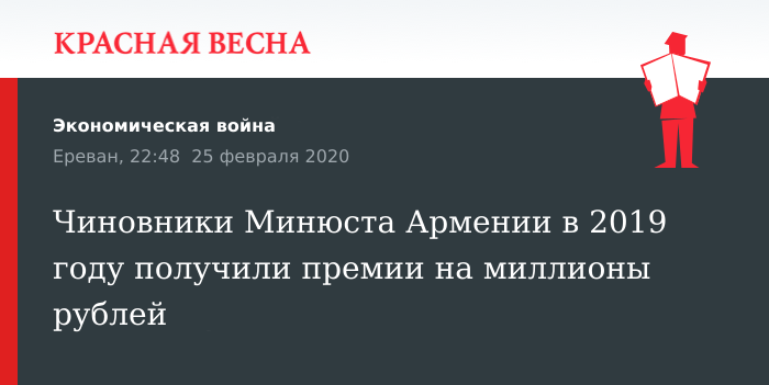 Чиновники Минюста Армении в 2019 году получили премии на миллионы рублей