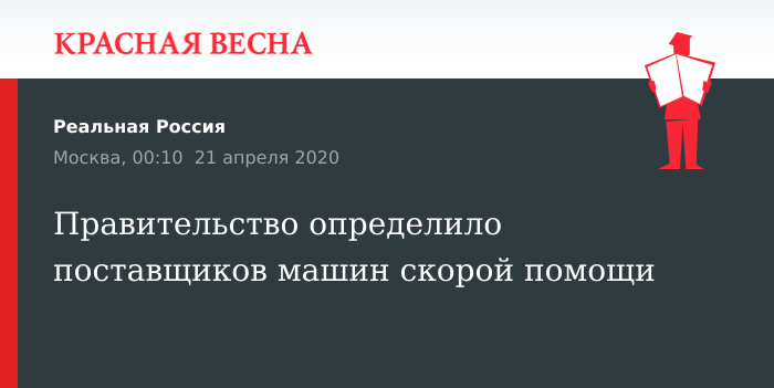 Распоряжение правительства РФ, определяющее поставщиков 1258 автомобилей скорой помощи для регионов России опубликовано 20 апреля на официальном портале правовой информации.