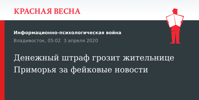 Денежный штраф грозит жительнице Приморья за фейковые новости
