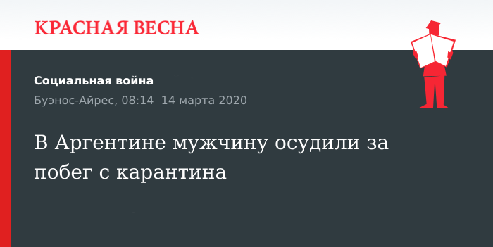 В Аргентине мужчину осудили за побег с карантина