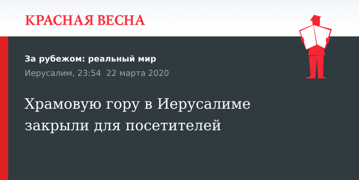 Доступ на Храмовую гору в Иерусалиме закрыт для посетителей, 22 марта сообщает издание Haaretz со ссылкой на источники в Израиле, а также Исламский совет.