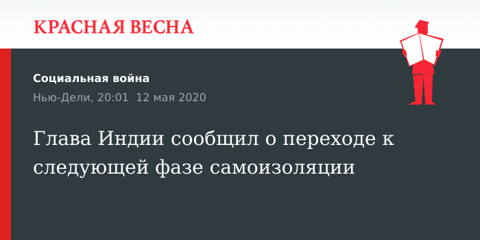 Необходимость перехода к следующему этапу режима самоизоляции отметил премьер-министр Индии Нарендра Моди 12 мая во время своего обращения к народу страны.