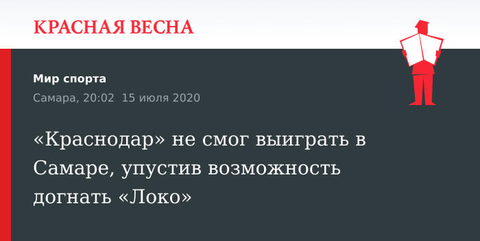 Нулевой ничьей между «Крыльями Советов» и «Краснодаром» завершился матч 29-го тура Российской премьер-лиги (РПЛ) 15 июля в Самаре.