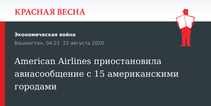 Пандемия коронавируса стала причиной временной приостановки авиасообщения с полутора десятком городов США американской компании American Airlines, 20 августа говорится в заявлении американского авиаперевозчика.