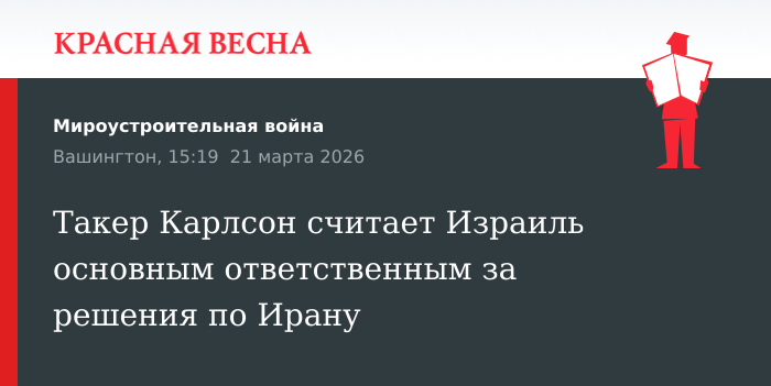 Самые важные решения, касающиеся военных действий в отношении Ирана, принимает Израиль, заявил 16 марта американский журналист Такер Карлсон в своем видео на Youtube.