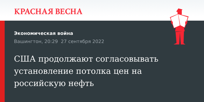 Напомним, 2 сентября министры финансов G7 договорились добиться введения «потолка» цен на российскую нефть, чтобы «ускорить деградацию» экономики России. Для этого предполагалось запретить перевозку российской нефти, если она дороже определяемого G7 уровня. В России заявили, что не будут продавать нефть и нефтепродукты странам, которые примут решение о таком ограничении.