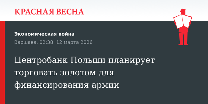 Национальный банк Польши рассматривает возможность активного управления золотыми резервами для получения прибыли на нужды армии, заявил президент нацбанка Адам Глапиньский, 11 марта сообщает Business Insider Polska.