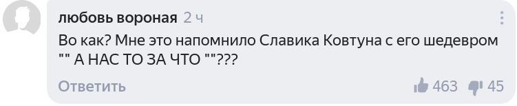 Едва ли не самое большое число одобрительных оценок получил комментарий, автор которого припомнила неадекватные реакции украинского политолога Вячеслава Ковтуна во время выступлений на российских телеканалах.