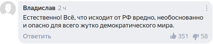 Комментарии по самой реакции зачастую делались в язвительном тоне. При этом пользователи намеками и открыто говорили о практике двойных стандартов к введению санкций, которая проводится на Западе.