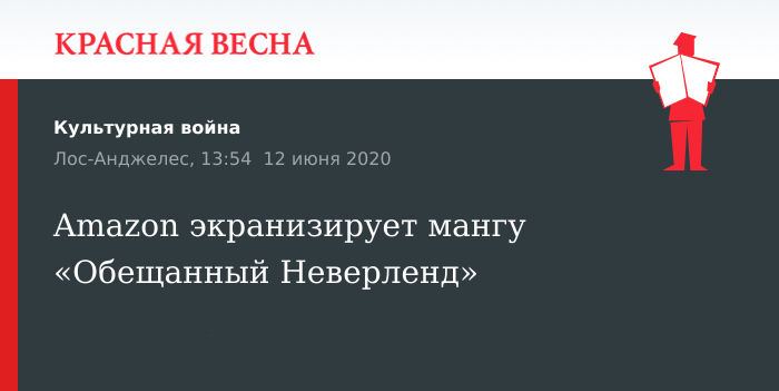 Анимационный сериал на основе адаптации манги «Обещанный Неверленд» намерен снять Amazon, 10 июня сообщает издание The Hollywood Reporter.