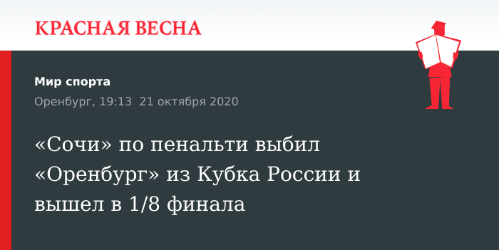 Победу над «Оренбургом» одержал «Сочи» 21 октября в матче, проходившем в рамках группового этапа Кубка России по футболу.