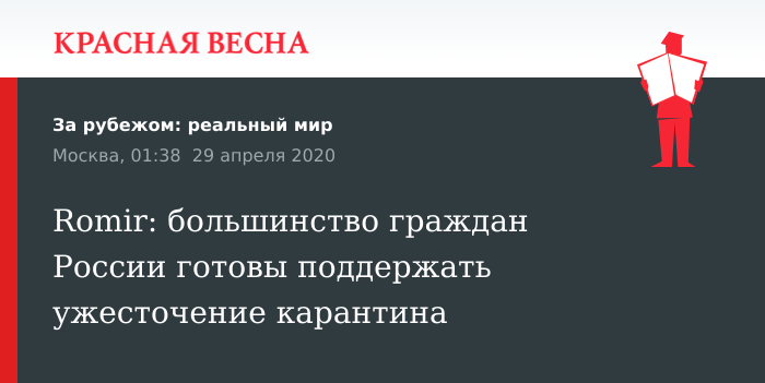 Romir: большинство граждан России готовы поддержать ужесточение карантина