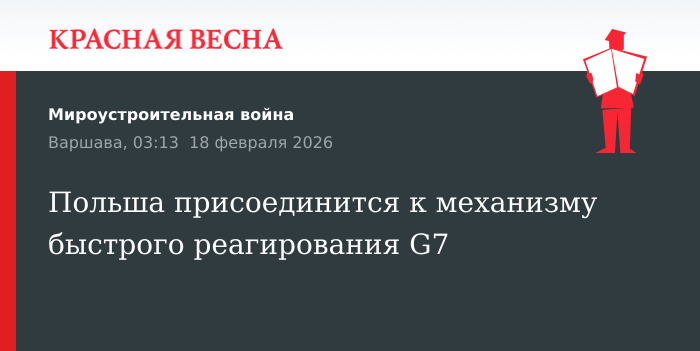 Польша присоединится к механизму быстрого реагирования G7 в качестве ассоциированного члена, 17 февраля сообщает Onet со ссылкой на информацию министерства иностранных дел страны.
