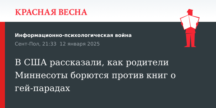 Государственные школы американского штата Миннесоты отстояли свое решение убрать предназначенную для детей книгу о гей-параде с полок своих библиотек, 12 января сообщает телеканал Fox News.
