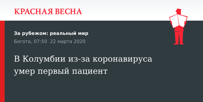 «Мы сожалеем — из-за коронавируса умер первый колумбиец », — сказал министр. По его словам, мужчина подвозил двух иностранцев, инфицированных коронавирусом.