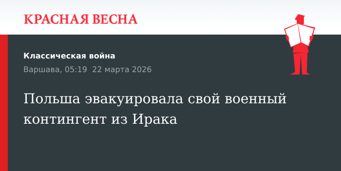 Польский военный контингент был эвакуирован из Ирака в связи с ухудшением ситуации с безопасностью на Ближнем Востоке, заявил вице-премьер и министр обороны Владислав Косиняк-Камыш 21 марта, сообщает Kresy.