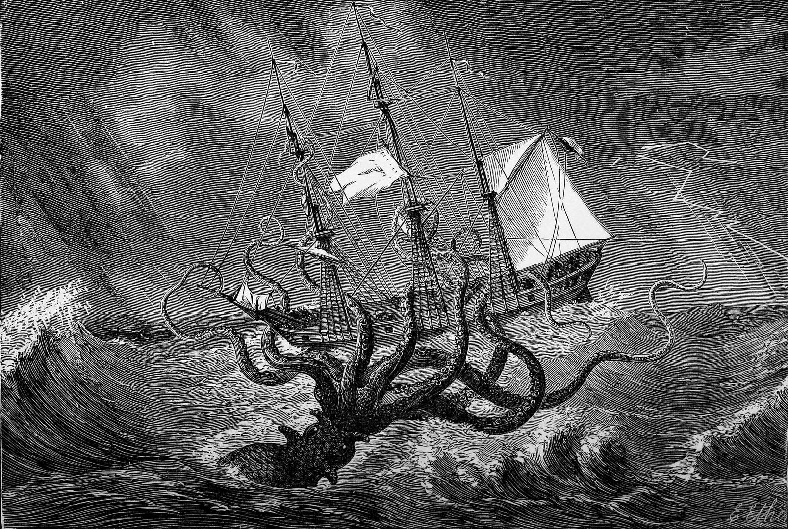 Кракен — это мифическое морское чудовище из скандинавского фольклора, похожее на гигантского осьминога, которое утаскивало под воду целые корабли. Новые открытия ученых доказывают, что подобные существа обитали в морях в эпоху динозавров как высшие хищники.