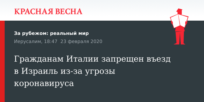 Граждане Италии и Австралии не смогут въехать в Израиль из-за угрозы распространения коронавируса. Граждане Израиля, возвращающейся из этих стран, пройдут двух недельный карантин.