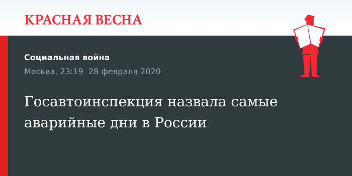 Самыми аварийными днями на дорогах России в 2019 году стали пятницы и субботы, 28 февраля сообщает пресс-служба Госавтоинспекция.