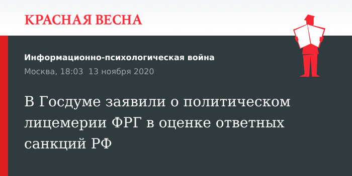 В Госдуме заявили о политическом лицемерии ФРГ в оценке ответных санкций РФ