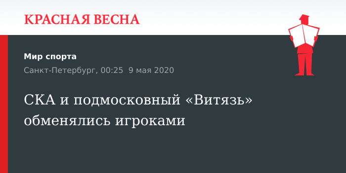 Обмен игроками провели питерский хоккейный клуб СКА и подмосковный «Витязь», 8 мая сообщает пресс-служба команды с берегов Невы.