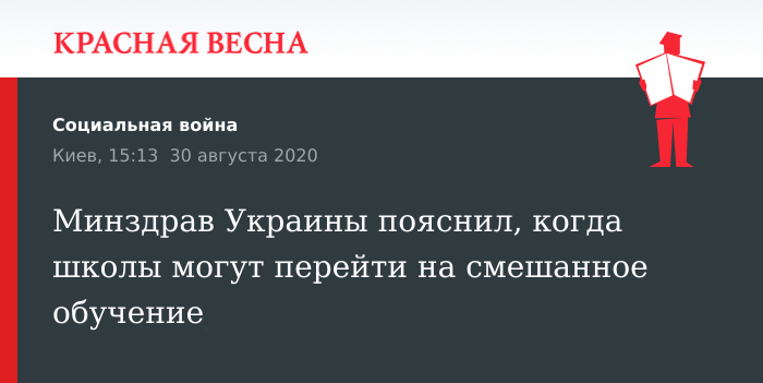 Переход на смешанное обучение, включающий дистанционное и стационарное обучение возможен по решению школы, если она находится в «оранжевой» зоне. Об этом 30 августа заявил на брифинге журналистам министр здравоохранения Украины Максим Степанов.