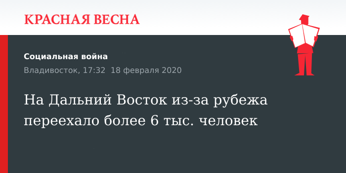 На Дальний Восток из-за рубежа переехало более 6 тыс. человек