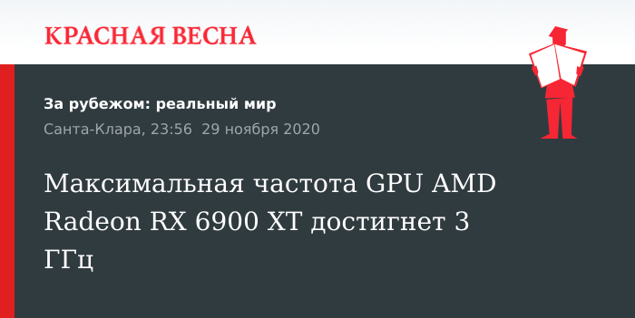 Максимальная частота видеокарты Radeon RX 6900 XT, поступление которой в продажу ожидается уже в декабре 2020 года выше, чем у имеющихся сейчас на рынке, 29 ноября сообщает ixbt.com.