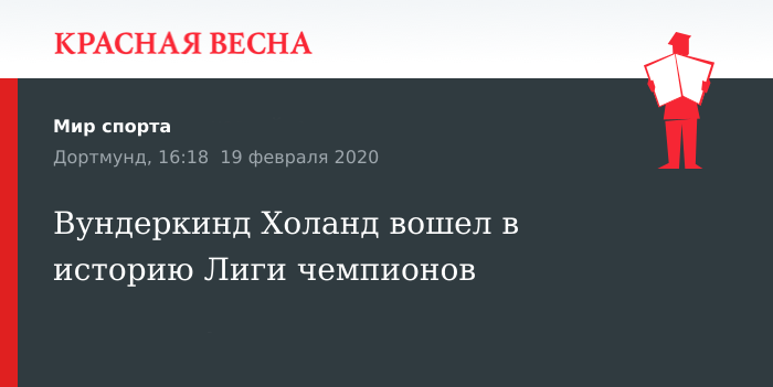 Лучший игрок прошедшего 18 февраля матча 1/8 финала Лиги чемпионов между «Боруссией» и «Пари Сен-Жермен», 19-летний форвард из Норвегии Эрлинг Холанд на групповом этапе турнира был заигран за австрийский «Ред Булл Зальцбург».