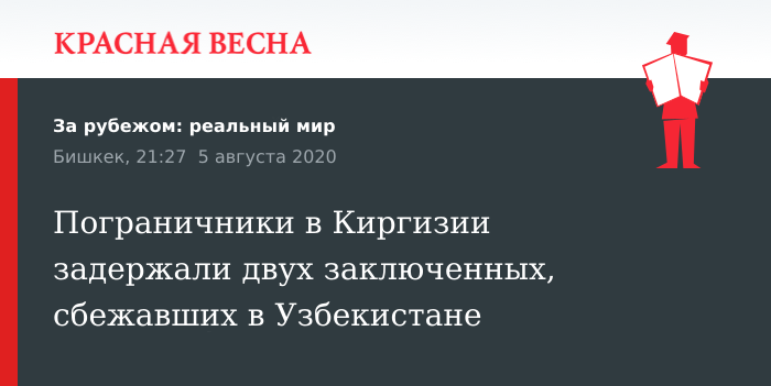 Киргизские пограничники задержали в местности Бел-Согот Аксыйского района Жалал-Абадской области Киргизии двух преступников, сбежавших из мест заключения в Узбекистане, сообщили 5 августа в пресс-службе Государственной погранслужбы Киргизии.