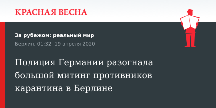 По информации немецкой полиции, несколько сотен человек собрались 18 апреля на площади Розы Люксембург в центре Берлина. Они протестовали против ограничения основных прав граждан во время пандемии коронавируса.