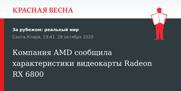Параметры новой видеокарты Radeon RX 6800 сообщил вице-президент и генеральный директор Radeon Technologies Group компании Advanced Micro Devices (AMD) Скотт Херкельман 28 октября на официальной презентации в онлайн-формате.