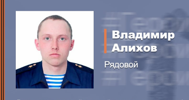 Под шквальным огнем вражеских минометов и артиллерии, в условиях применения неонацистами средств радиоэлектронной борьбы, Владимир Алихов профессионально обеспечил бесперебойную связь командира с подразделениями и вышестоящим штабом.