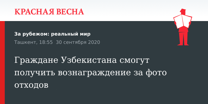 Оплату за фото- и видеоматериалы о нарушении порядка обращения бытовых и строительных отходов ввели власти Узбекистана. Это следует из соответствующего постановления президента республики, опубликованного 29 сентября агентством «УзА».