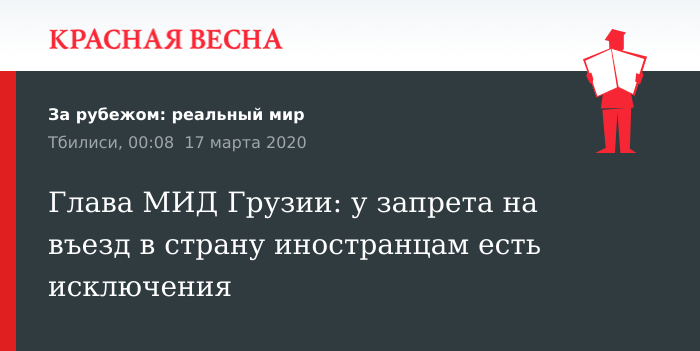 У запрета на въезд в Грузию иностранцам предусмотрены исключения. Об этом рассказал глава грузинского МИД Давид Залкалиани 16 марта, сообщает новостной портал On.ge.