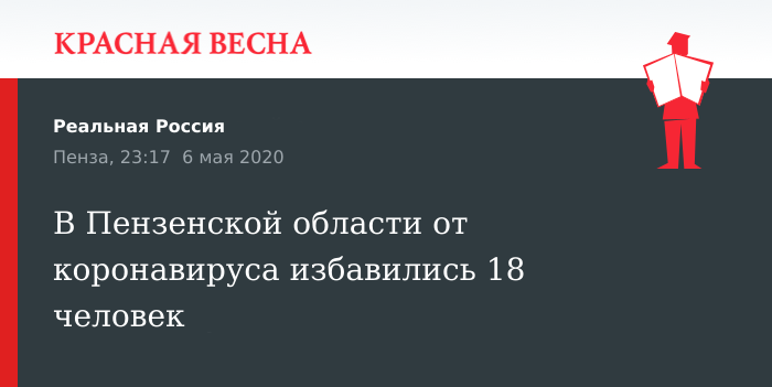 От коронавируса в Пензенской области излечились еще 18 человек. Об этом 6 мая сообщила пресс-секретарь губернатора региона Дина Черемушкина, в своем телеграмм-канале.