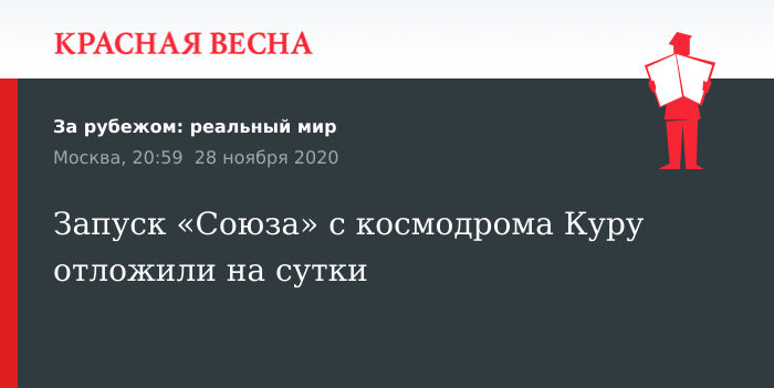 Напомним, старт ракеты-носителя «Союз-СТ-А» был запланирован на ранее утро 29 ноября. 28 ноября в СМИ появилась информация о возможном переносе запуска из-за технической неисправности.