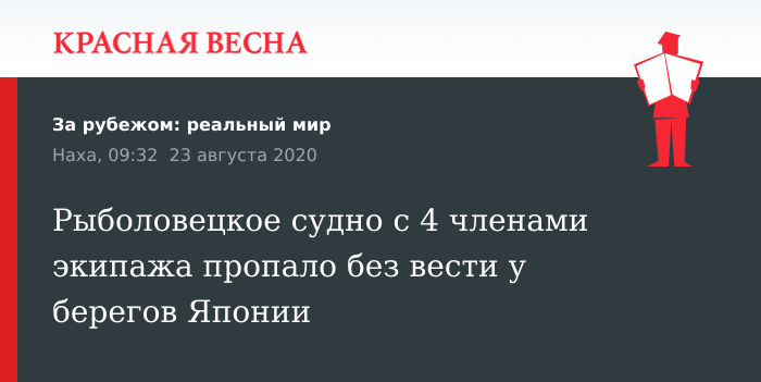 Рыболовецкое судно с 4 членами экипажа пропало без вести у берегов Японии