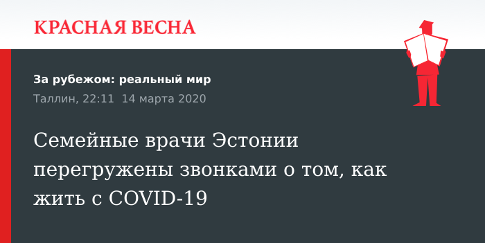 Просьбу к жителям Эстонии, обращаться только с медицинскими вопросами, высказал пресс-секретарь телефонной линии семейных врачей 14 марта, на фоне возросшего потока звонков из-за обнаружения COVID-19 в стране, сообщает Postimees.