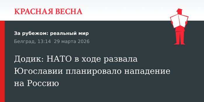 Нападение на Россию готовилось блоком НАТО в ходе развала Югославии в 1990-х, заявил глава партии «Союз независимых социал-демократов» в Республике Сербской Милорад Додик, 29 марта сообщает РИА Новости.