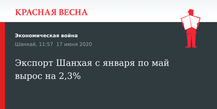 Экспорт Шанхая за первые пять месяцев 2020 года достиг 530 млрд юаней (около $74,7 млрд), увеличившись на 2,3% в годовом исчислении, сообщили 17 июня в таможенных органах Шанхая.