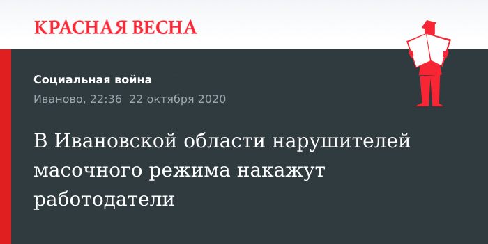 В Ивановской области нарушителей масочного режима накажут работодатели