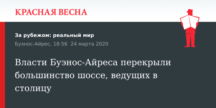 Отметим, накануне в Буэнос-Айресе за нарушение карантина были задержаны 546 человек. Всего в Аргентине зарегистрирован 301 подтвержденный случай заражения коронавирусом, четыре человека умерли от коронавирусной пневмонии.
