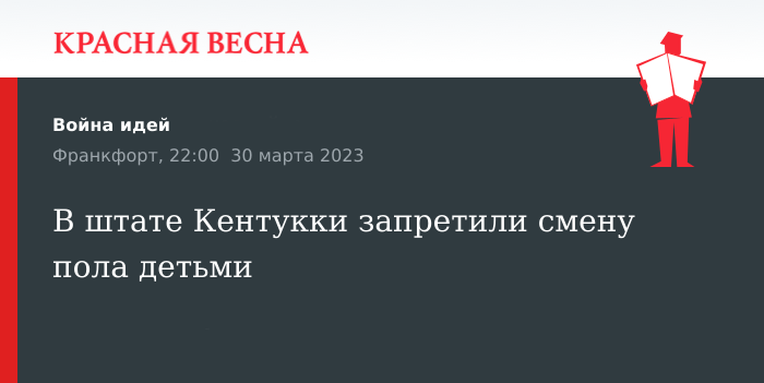 Республиканские законодатели в штате Кентукки ввели запрет на смену пола для несовершеннолетних, преодолев вето губернатора-демократа, сообщил 29 марта сайт The Post Millenial.