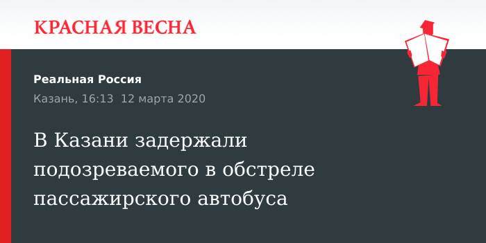 Отметим, 9 марта в Казани неизвестные обстреляли из пневматического оружия пассажирский автобус № 46. В салоне автобуса находились семь человек, никто из них, по данным МВД, не пострадал.